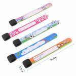 Die Größe des Kids Safety ID-Armbands beträgt 19,5 x 2 cm . Am Armband befindet sich ein Knopf, mit dem Sie die Länge anpassen können. Auf diese Weise können Sie die Länge problemlos für Kinder anpassen.