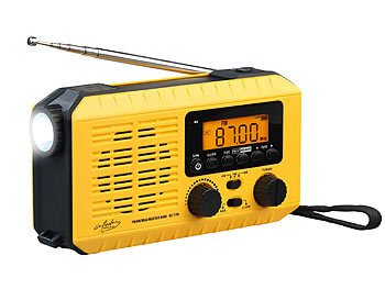 • Robustes Notfallradio mit Licht, 2.000 mAh (enthalten) für bis zu 12 Stunden Musik, Solar- und Dynamo-Kurbel-Radio, LED-Licht, SOS, Powerbank, LCD-Display, 15,8 x 8,5 x 4,5 cm