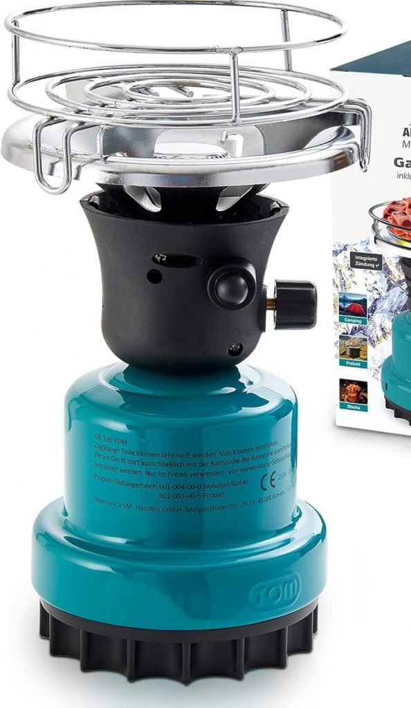 • Gaskocher inkl Kartusche– warme Mahlzeiten unabhängig von Strom oder Gasnetz, mit 1,1 kW sehr leistungsstark, EINFACHE HANDHABUNG –190 g Stechgas kartusche (Norm EN 417)11L x 11B x 24H cm