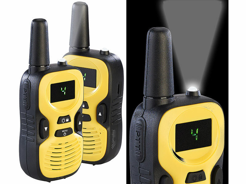 • Reichweitenstarkes Funkgeräte-Set: bis zu 2 km (offenes Feld)